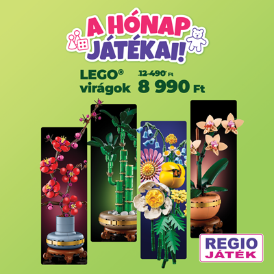 Az akció kizárólag a 14167 (10343), 14168 (10344), 06679 (10347) és 11307 (10369)-es cikkszámú termékre vonatkozik 2026. február 1. - március 8. között, illetve a készletek erejéig az ország összes REGIO JÁTÉK áruházában és a regiojatek.hu webáruházban. Más akciókkal nem összevonható. A termékek elérhetősége áruházanként eltérhet. A kép illusztráció. A LEGO®, a LEGO® logó és a minifigurák a LEGO® csoport védjegyei. ©2026 The LEGO® Group. Minden jog fenntartva.